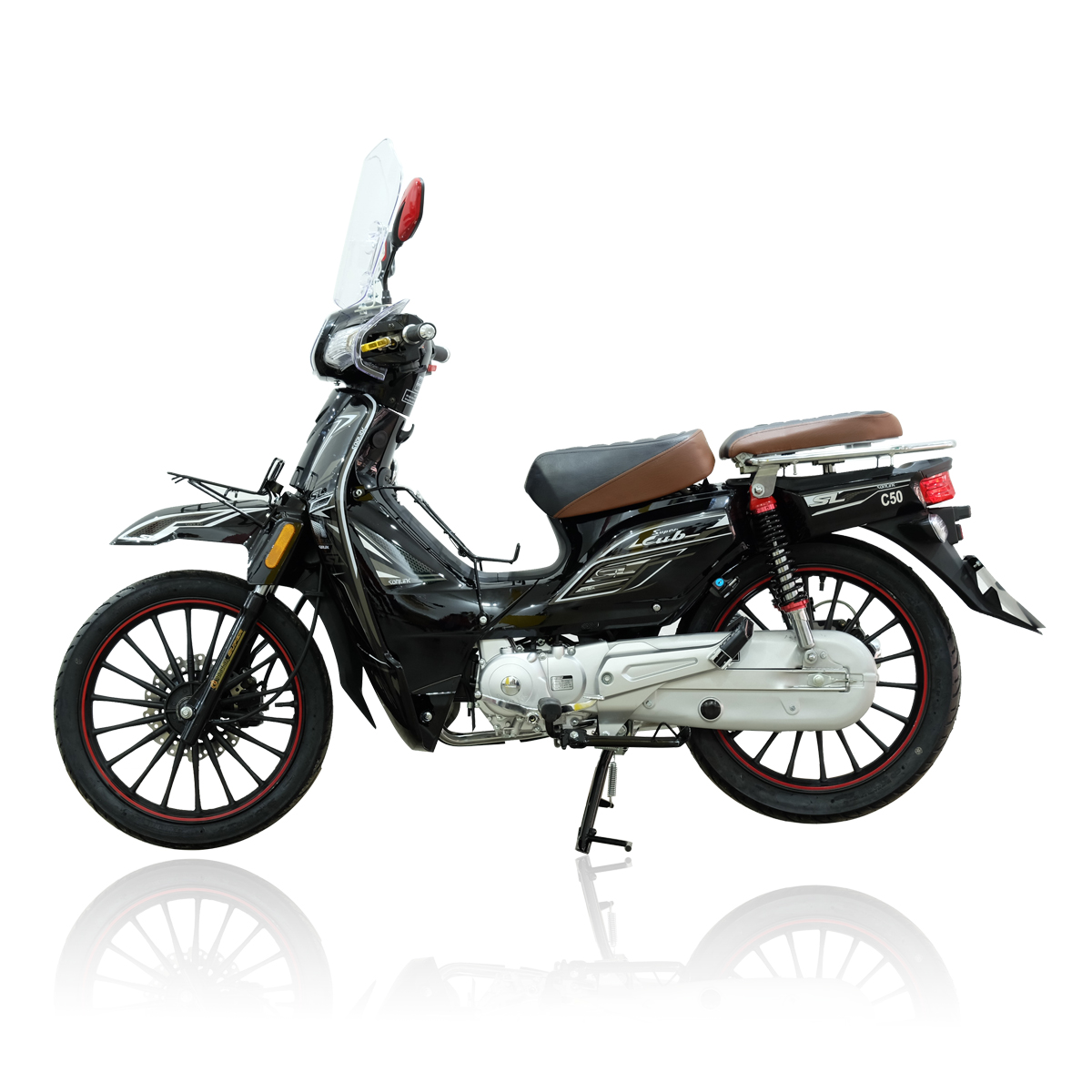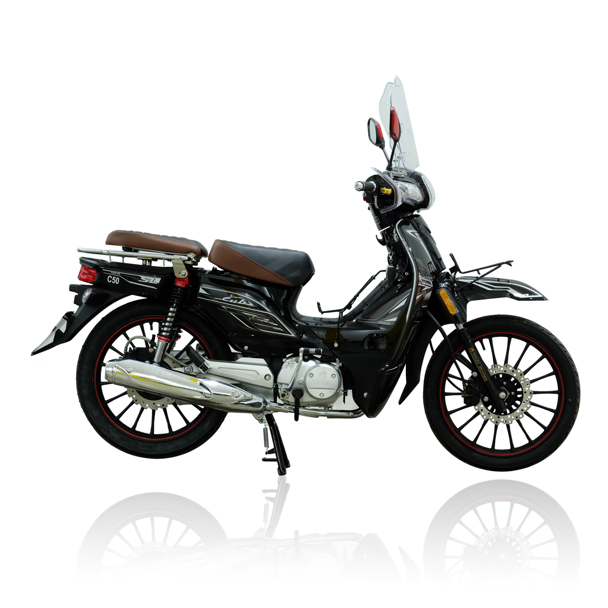SONLINK C50 SUPER CUB est équipé d’un tableau de bord numérique avec couleurs, des grandes roues de 17 pouces, un verrouillage centralisé, avec un design unique, des feux arrière à LED, d’une connexion USB dans la boîte à gants.