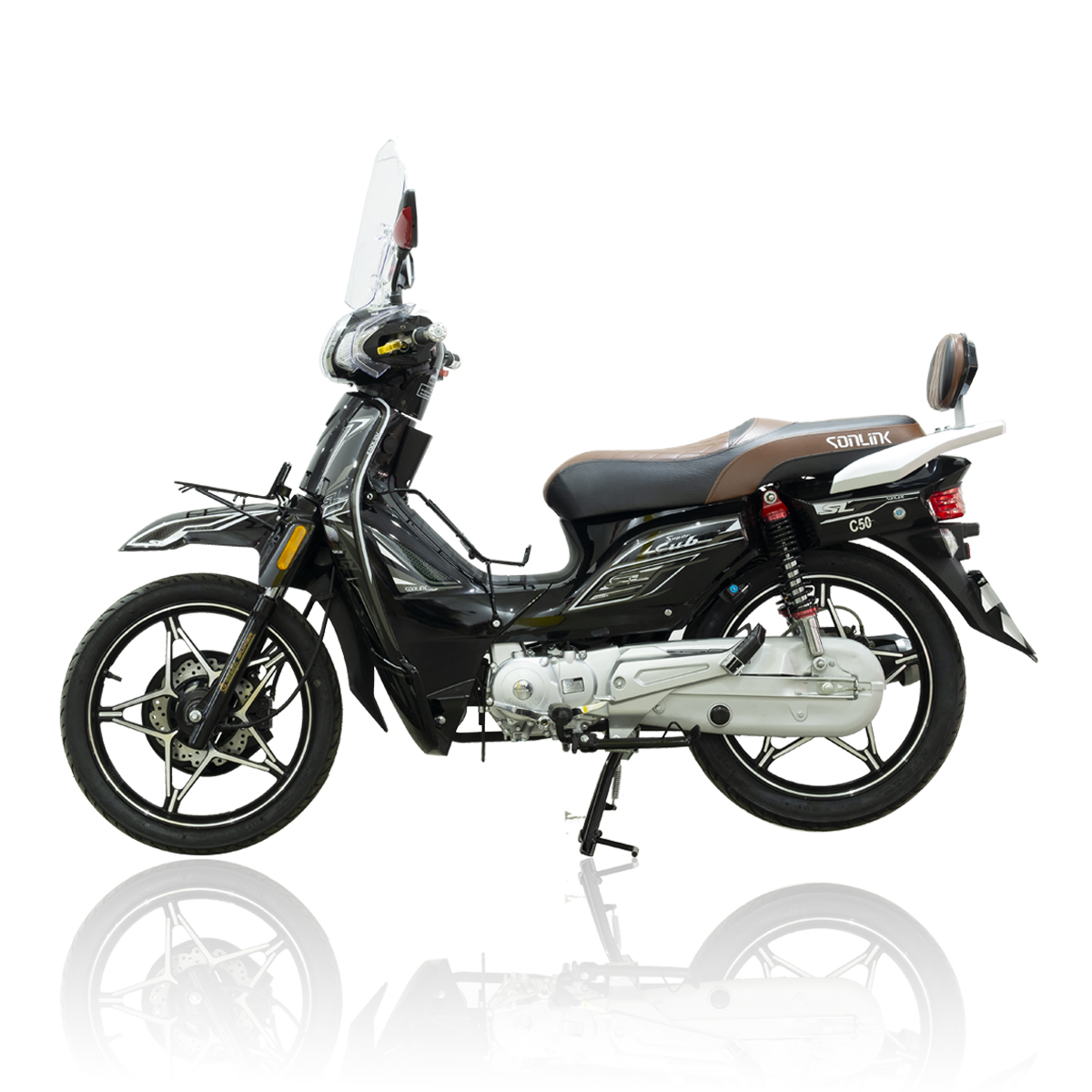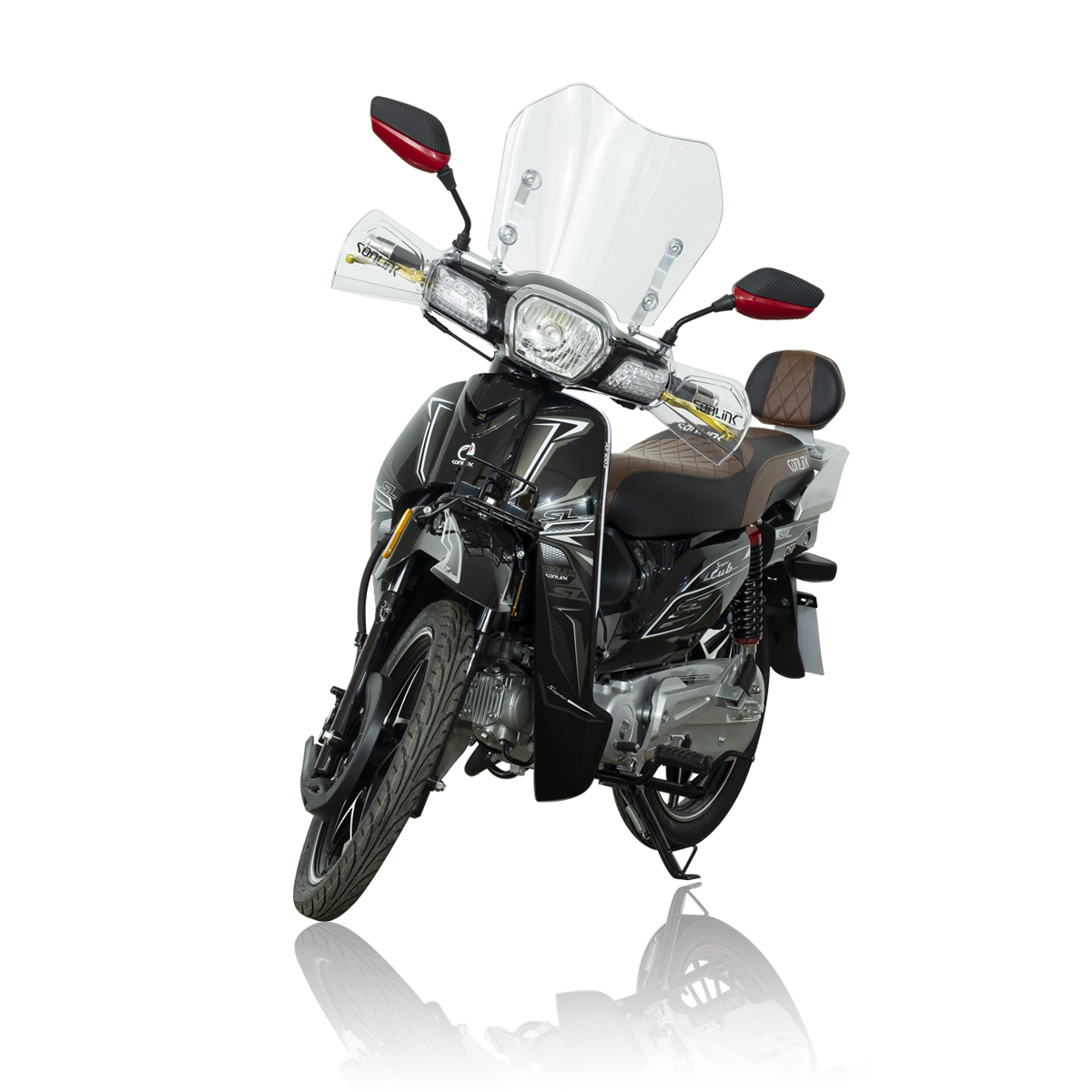 SONLINK C50 SUPER CUB est équipé d’un tableau de bord numérique avec couleurs, des grandes roues de 17 pouces, un verrouillage centralisé, avec un design unique, des feux arrière à LED, d’une connexion USB dans la boîte à gants.